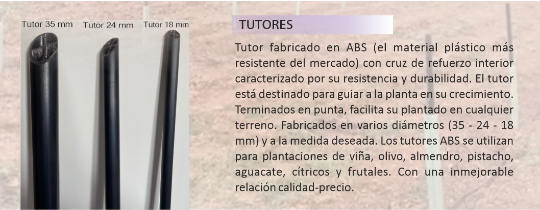 | Trabajamos con los productos de la mayor calidad del mercado (Polipropileno 100% virgen y ABS) | Somos fabricantes de tutores y tubos protectores con amplia experiencia en el sector de la agricultura. Más de 10 años nos avalan | Transporte de tutores y tubos protectores a cualquier zona del territorio nacional e internacional |